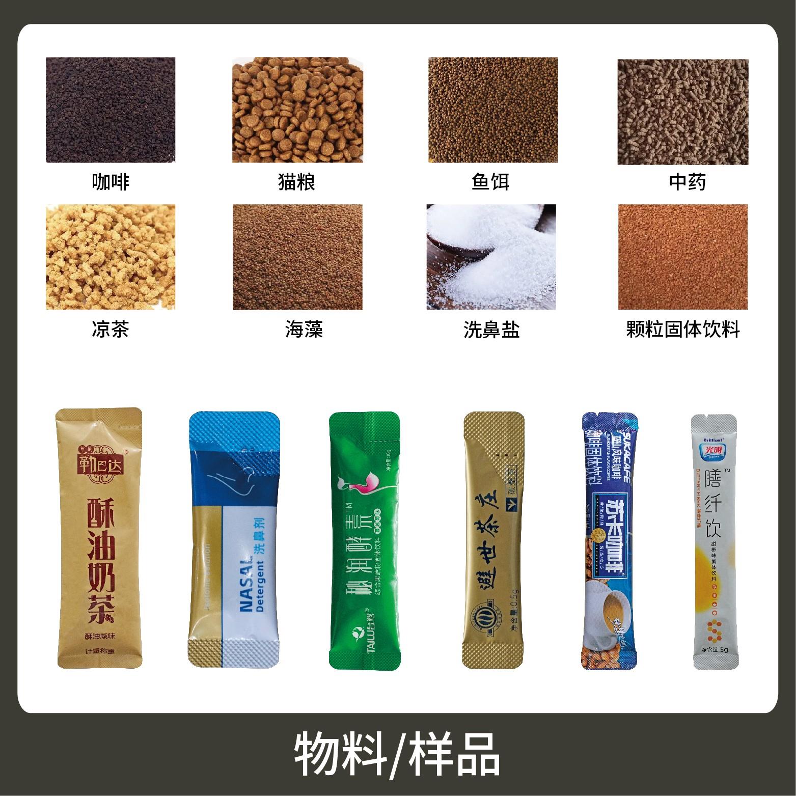 1、適用于食品、醫(yī)藥、化工、化妝品行業(yè)中顆粒物品的計量包裝,如:咖啡、保健品、營養(yǎng)品等。